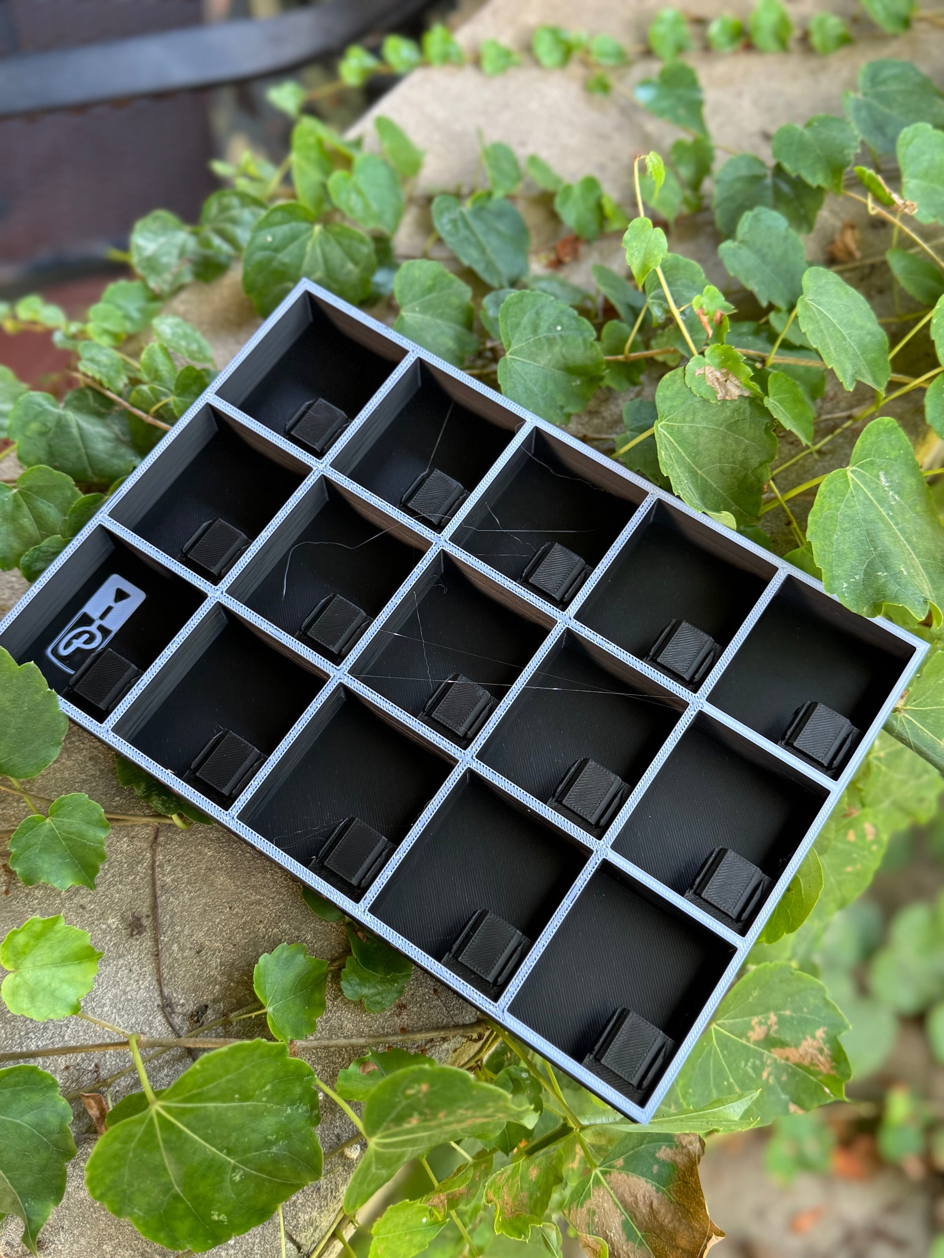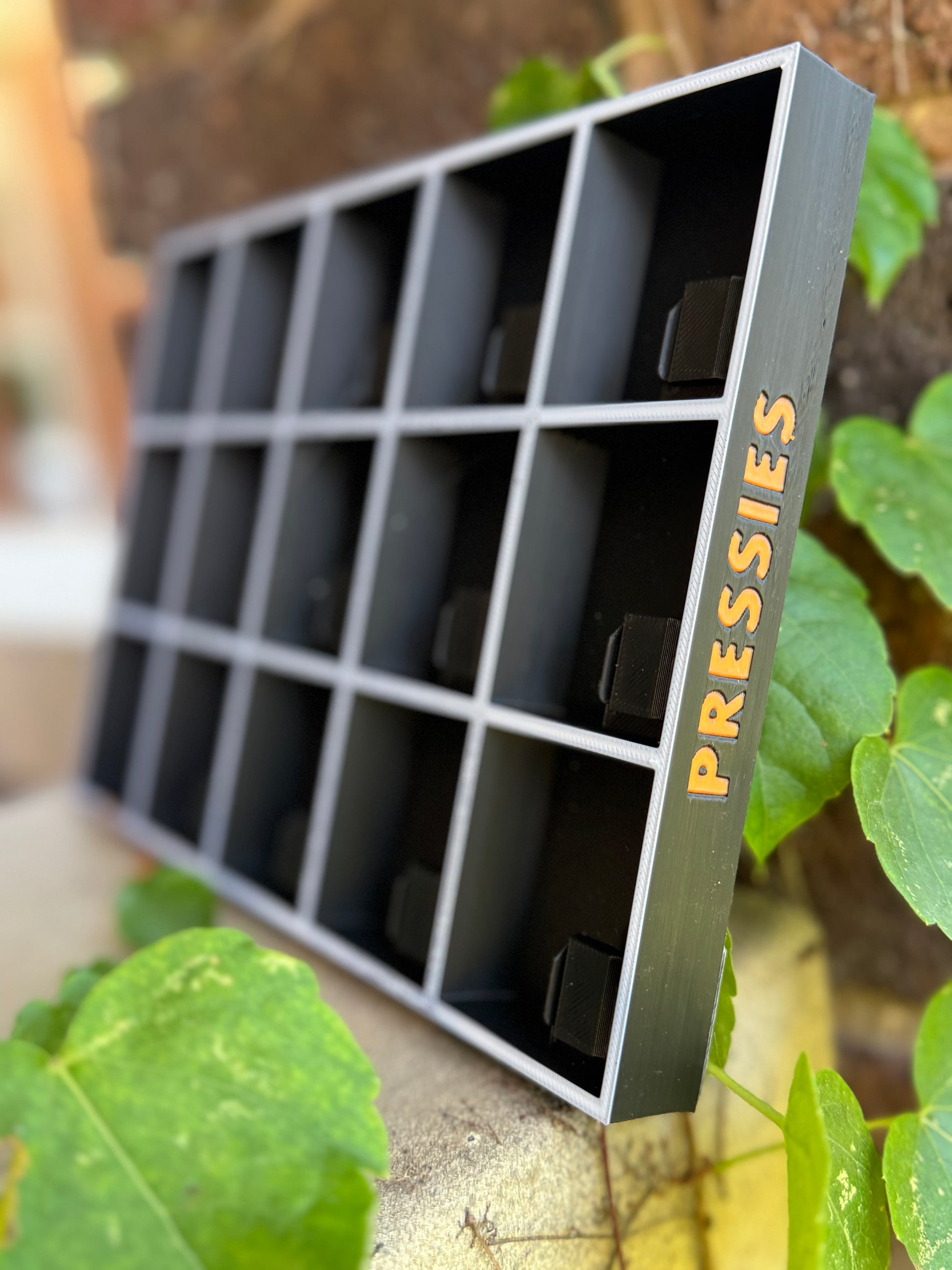 Our Pressie Tray just got a vampy edit for spooky season. Black with white trim and orange lettering, this tray holds 15 sets of your most monstrous press-on nails from Olive & June.
