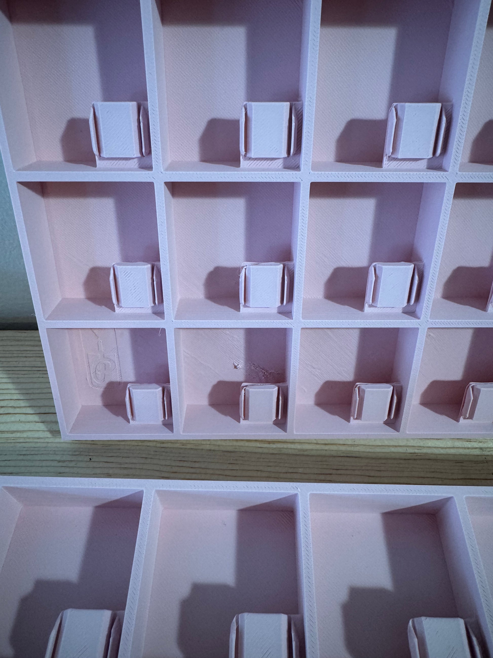 Three press-on trays with our outdated labeling and minor warping at the corners. One tray has minor defects on the bottom. These trays are for the Instant Mani and Super Stick nails.