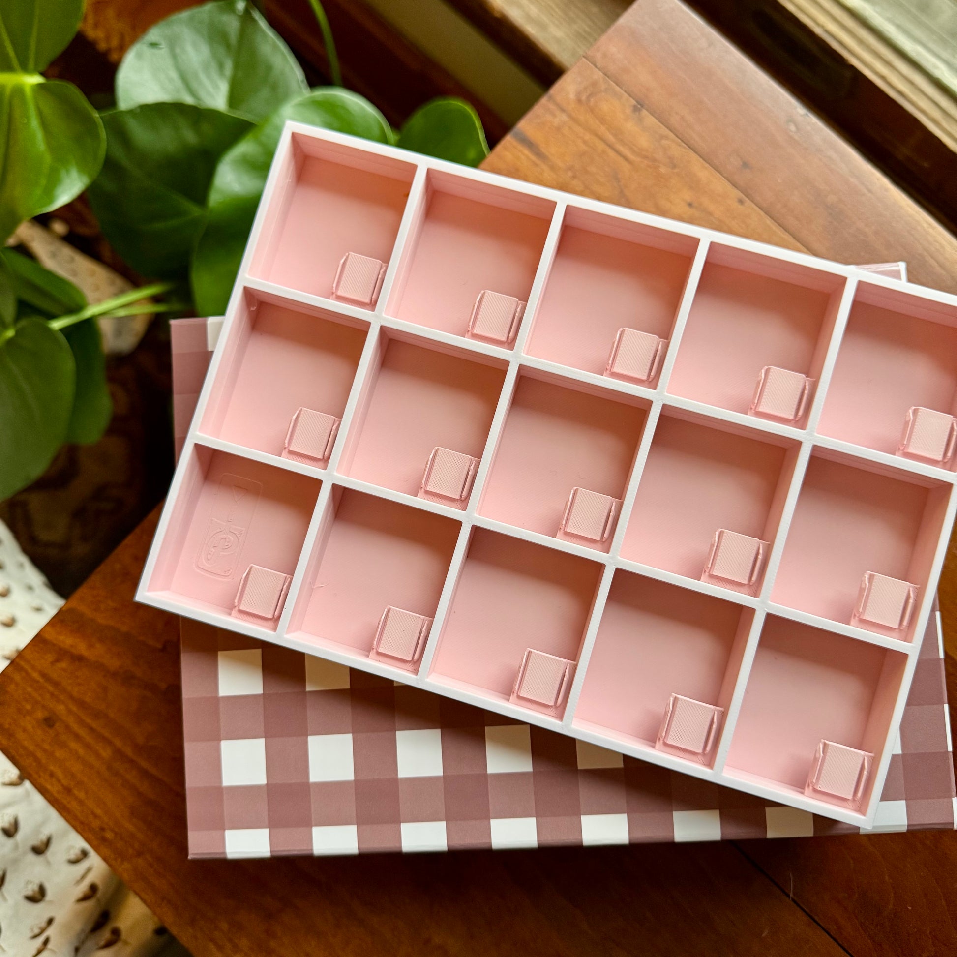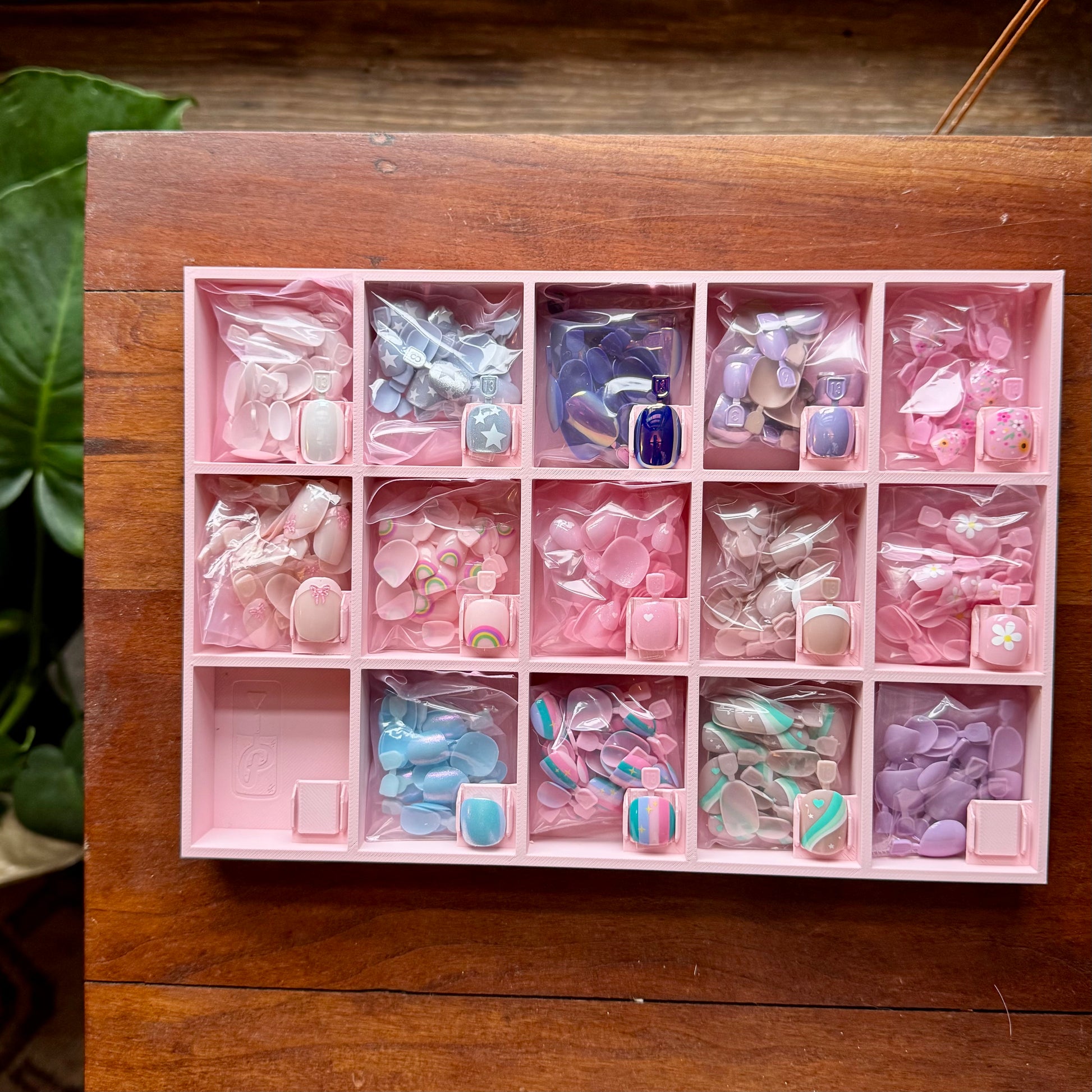 Our most innovative organization system, now for kids and tweens! Store and display your Olive & June pressies with The Press-On Collection. Personalize the trays with your child's name, adding a cute white piping to the top of the custom trays! Designed to stack perfectly in an O&J seasonal mani system box, all you need is ready at your fingertips. Mix and match your trays to store your favorites. If you won’t be storing your trays in O&J’s mani system box, add on The Corner Clips to securely stack the trays in a drawer or on a shelf.